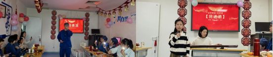 值此时刻,欢歌乐曲也是必不可少,节目表演紧随其后。手术室护士高寒拿起话筒,放声一曲,嘹嘹歌声充满青年人的蓬勃希望,伴随着美妙的节奏,吸引着所有人的目光。麻醉医生庞芸抚琴伴音,铮铮琴鸣奏响时与座者皆是耳目一新,大家都随着庞老师的琴音漫游到无穷无尽的另一番美妙世界,庞老师和女儿金希希和琴发声,为大家朗诵一首《将进酒》,小朋友气势雄厚,再次点燃会场气氛。铿锵琴鸣,朗朗童音,古今豪迈在此时此刻重叠,来自诗仙的狂语叫大家心潮澎湃,热血激昂,麻醉手术部这个大家庭沉浸在无尽欢快之中。